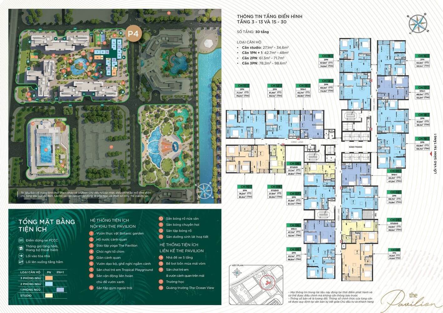 The Pavilion nằm ngay trên mặt đường Lý Thánh Tông, cửa ngõ phía Bắc khu đô thị Vinhomes Ocean Park Gia Lâm. Đây là một trong những tuyến giao thông trọng điểm tại Gia Lâm, được quy hoạch rộng lên tới 40 m với 6 làn xe chạy, liên kết trực tiếp với 2 tuyến quốc lộ 5A, 5B và cầu Ngọc Hồi (Dự kiến triển khai trong giai đoạn 2022 – 2025). The Pavilion gồm 04 tòa căn hộ P1, P2, P3 và P4, có chiều cao tầng: 30 – 32 tầng.