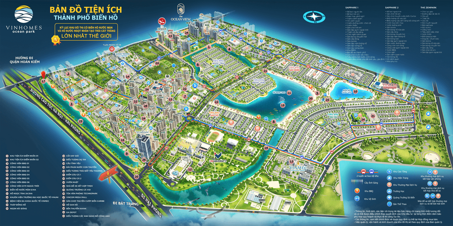 Tại Vinhomes Ocean Park, chúng tôi kiến tạo một thành phố với điểm nhấn là biển hồ nước mặn 6,1 ha cùng với hồ trải cát trắng 24,5ha mang lại cuộc sống biển xanh, cát trắng mỗi ngày cho cư dân. Mang tầm vóc của Đại đô thị đẳng cấp quốc tế, Vinhomes Ocean Park còn nổi bật bởi các hệ thống đại tiện ích như GYM park, BBQ park cùng hàng trăm sân thể thao đa dạng hài hòa giữa không gian sinh thái cây xanh, mặt nước.