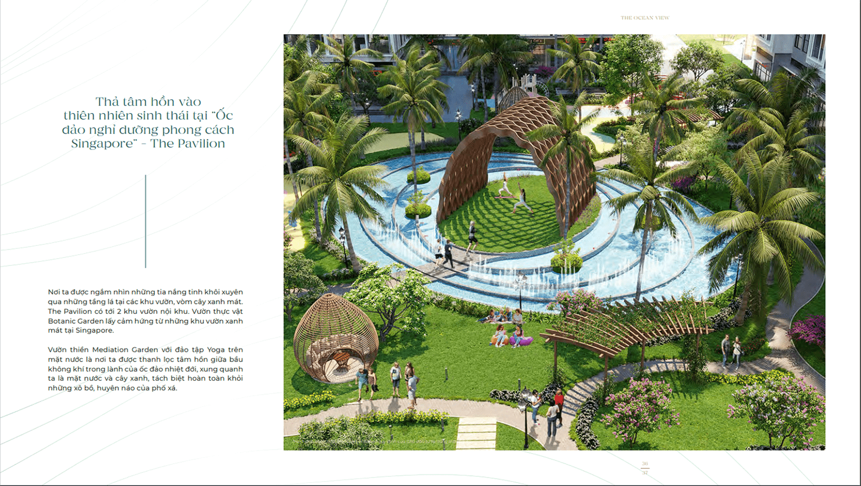 Mới đây phân khu The Pavilion đã chính thức mở bán – nơi được ưu ái mệnh danh là “Ốc đảo nghỉ dưỡng sinh thái phong cách Singapore” với hệ sinh thái cây xanh, thảm cỏ, hồ nước và vườn thực vật Botanic Garden. Phân khu Pavilion là một trong ba mảnh ghép của The Ocean View – dự án đẹp nhất Thành phố biển hồ Vinhomes Ocean Park, phát triển theo mô hình đô thị nghỉ dưỡng.