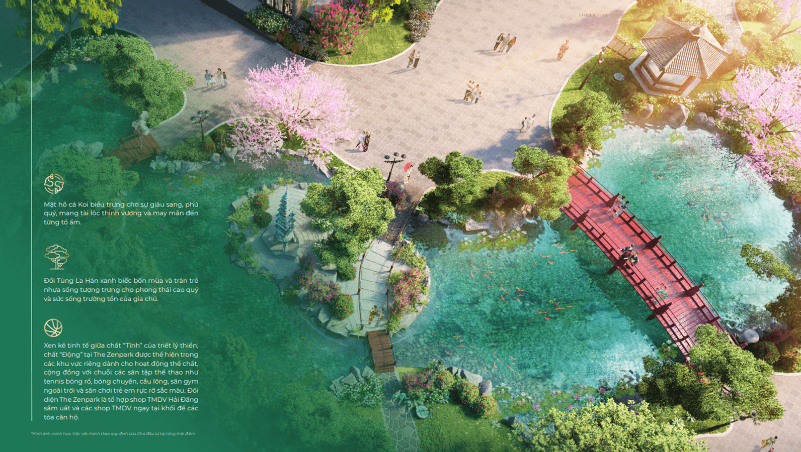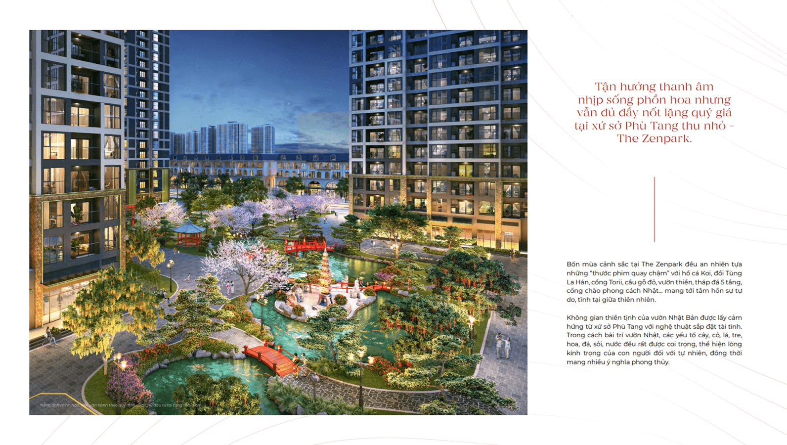 Ngay dưới chân tòa tháp The Zenpark là hàng loạt tiện ích hiện đại, đáp ứng đủ đầy mọi nhu cầu của cư dân – từ học tập đến vui chơi, giải trí, rèn luyện thể chất. Chỉ một bước chân, chủ nhân căn hộ tương lai đã chạm tay tới cuộc sống năng động, đủ đầy: Vườn nội khu phong cách Nhật Bản độc đáo, Hồ bơi 04 mùa thời thượng, Trường học liên cấp Vinschool, Đa dạng sân thể thao, Đường dạo cây xanh, …